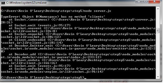 I'm very new to node.js and socket.io and I'm not sure what's going on. Any help would be appreciated.